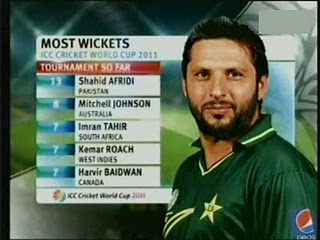 ICC Cricket World Cup 2011 - Massive and Marvelous Bowling of Boom Boom Afridi. Afridi was failure in completing the hatrick against the Canadian cricket team in a league match of ICC Cricket World Cup 2011, but he has been completed a hatrick of massive and terrific performance of bowling in continuous first three matches of ICC Cricket World Cup 2011